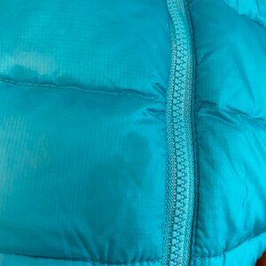 Turquoise LL. Bean puffer coat in good preowned condition except for a few light stains on the front. Size Small.