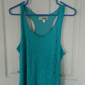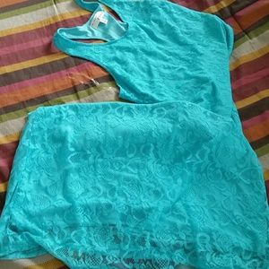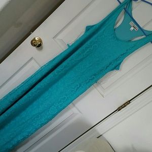 Sleeveless lace maxi dress. Full Lined. NEVER WORN. Good for spring and summer. Vibrant color.