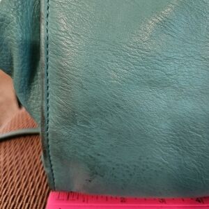 Stylish turquoise leather shoulder bag with intricate detailing. Perfect for adding a pop of color to any outfit.