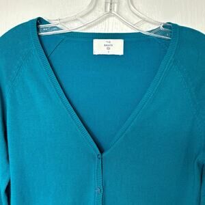 Turquoise Lightweight LS V-neck Button Up Knit Cardigan Size Small Layering