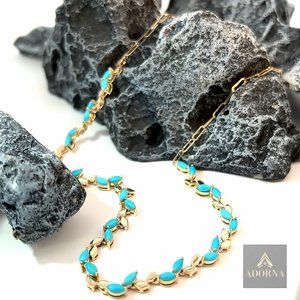 Turquoise Marquise 14K (or 18k upon request) Yellow Gold Leaf Motif Necklace