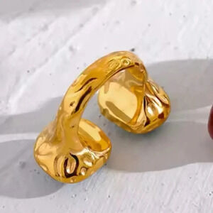 This ring features an open-ended design with two striking oval turquoise stones set in a 18K Gold stainless steel band, plated with a rich gold finish. The use of stainless steel ensures durability and resistance to tarnish, while the gold plating adds a luxurious sheen that enhances the overall elegance of the piece. The turquoise stones are smooth with natural veining, providing a unique, artisanal touch. The combination of the vibrant blue-green hue of the stones and the warm gold plating creates a beautiful contrast. With its adjustable open design, this ring offers both style and comfort, making it a versatile accessory suitable for any occasion. Its modern yet timeless appeal makes it ideal for both stacking with other rings or wearing alone as a statement piece.