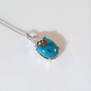 Turquoise Mojave Blue & Zircon Pendant Necklace