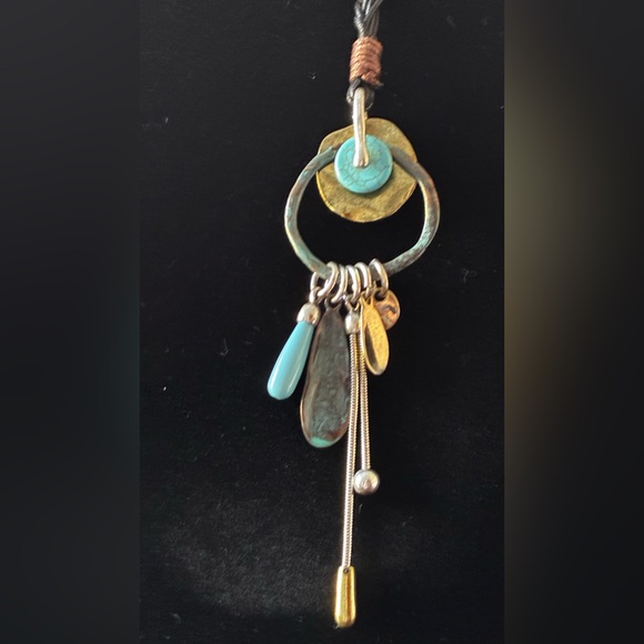 This stunning pendant necklace features a blend of turquoise and gold tones, perfect for adding a touch of elegance to any outfit.