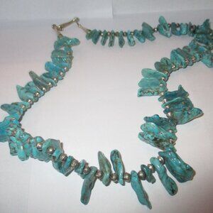 Turquoise Native American Sterling Silver 24" Vintage Necklace