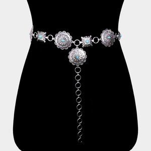 Turquoise Natural Stone Antique Metal Squash Blossom Boho Westen Style L…