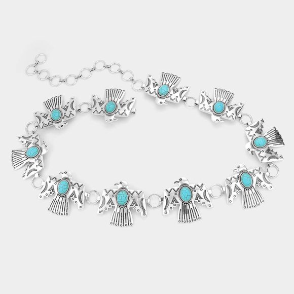 - Turquoise Natural Stone Antique Metal Squash Blossom Boho Westen Style L…