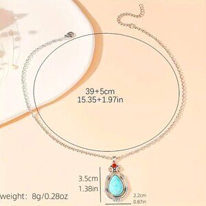 Turquoise Necklace & Earring 3pc Set Silver Glam Trendy Y2K Hipi Boho Minimalist