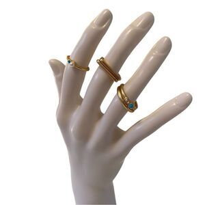 Turquoise & Pearl Goldtone Ring Stack. 5 Rings Total.