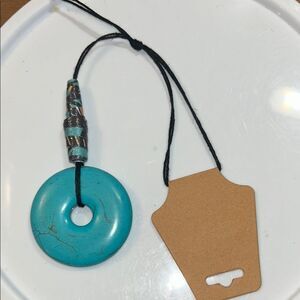 Stylish turquoise pendant necklace with black cord. Perfect for any occasion. 78D
