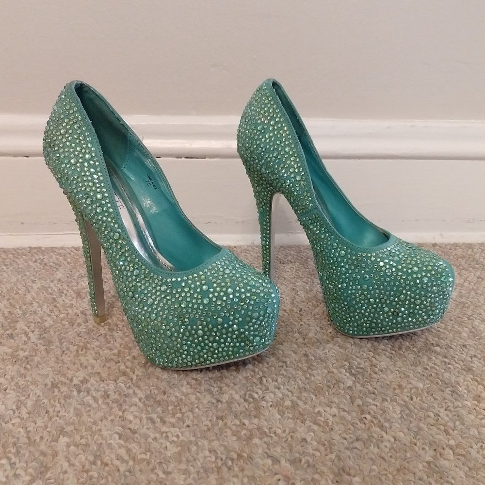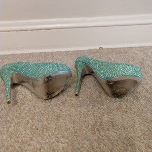 Turquoise Rhinestone Platform Heels