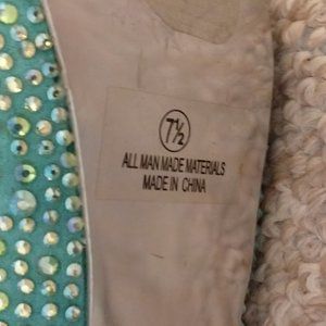 Amazing turquoise platform heels feature rhinestones all over pumps. Very good condition.