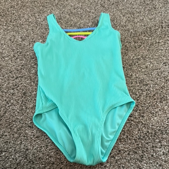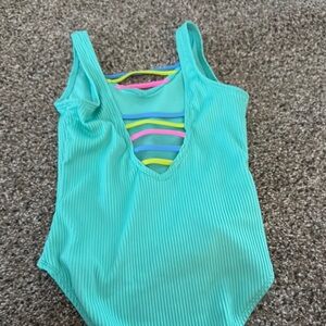 Stylish turquoise ribbed swimsuit. Perfect for beach days.