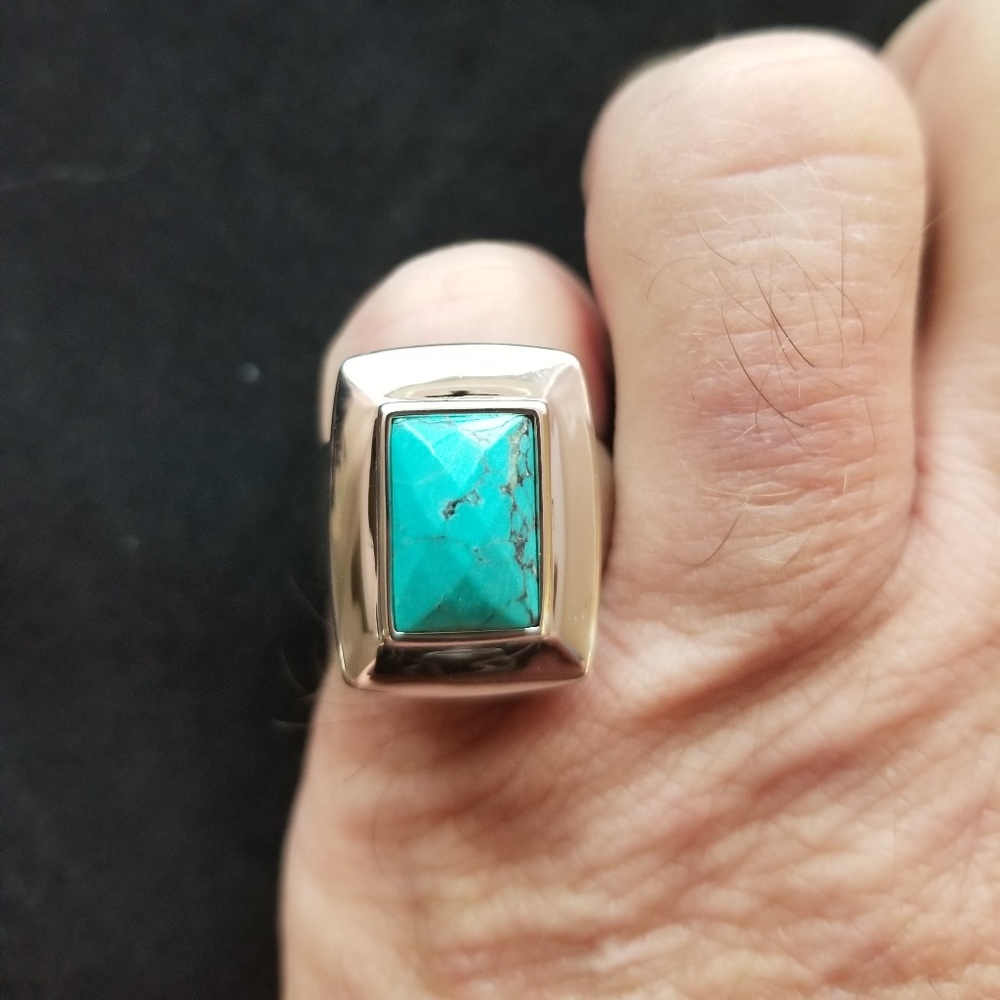 Elegant and Bold Genuine Turquoise Ring set in .925 Sterling Silver. Size 8.5