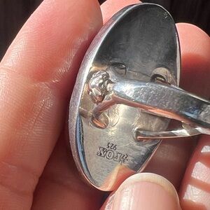 🍁Beautiful ring, stamped and signed by FOX. This was a trade and I do not have much info on her. Stone may be number 8 but unsure. Size 8. Measures 1 1/2" Long and approx. 3/4" wide.