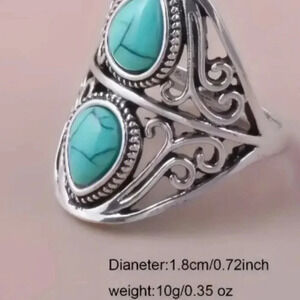 Retro Fashion Ring For Women, With Turquoise Gemstone Accents,