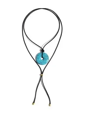 Turquoise Rope Necklace — a striking statement piece featuring a genuine turquoise stone pendant on a sleek black adjustable rope. The round turquoise centerpiece adds a vibrant pop of color, while the gold detailing brings warmth and sophistication for an effortlessly elevated coastal look.