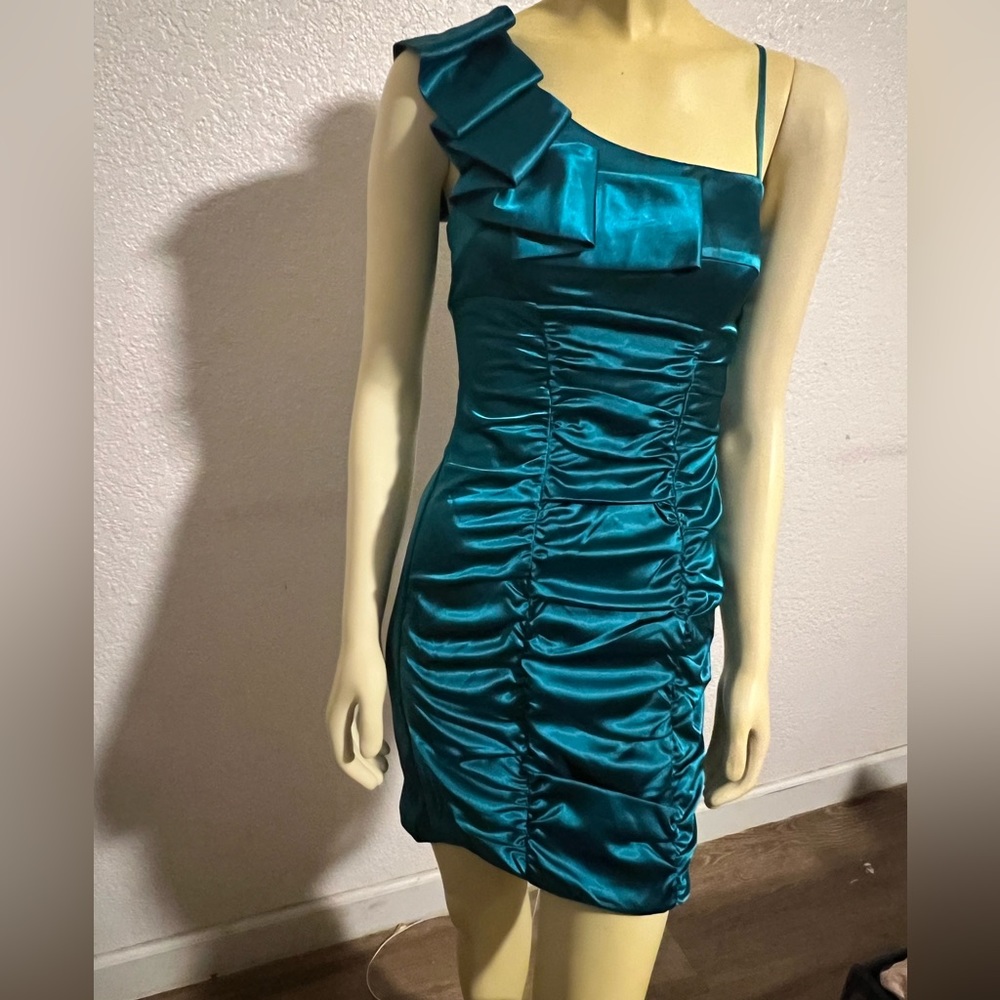 Turq chiffon asymmetrical formal mini sz 3. Perfect for fun formal events.