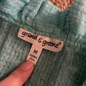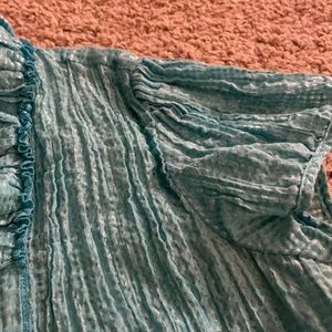 Great condition Super feminine and cute ruffle fabric Turquoise with slight shimmer Button Down