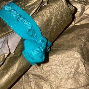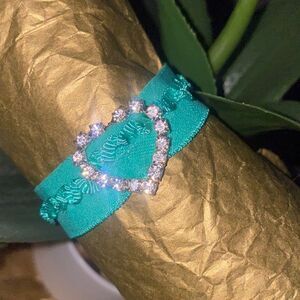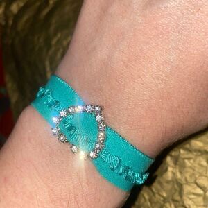 Turquoise Ruffle Heart Rhinestone Charm Hair Tie Ponytail Holder Bracelet