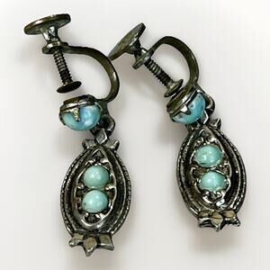 Turquoise Screwback Earring Set Vintage Dangle Silver Plated Southwestern Retro