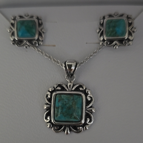 Beautiful turquoise set in sterling silver. Never worn & new in box.