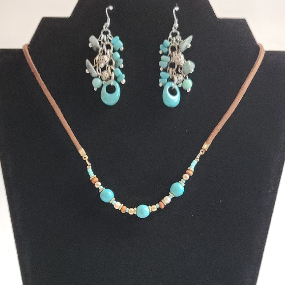 Enhance your style with this boho retro turquoise color beaded necklace and earring set. Perfect for any occasion, this set adds a touch of sophistication to your outfit.
