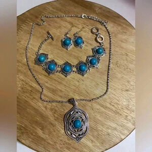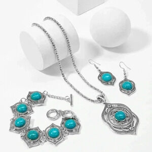 🆕Turquoise Silver Metal Boho Style Jewelry Set🆕
