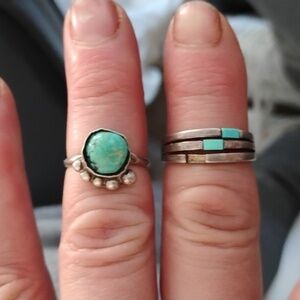 Turquoise Silver Ring Set