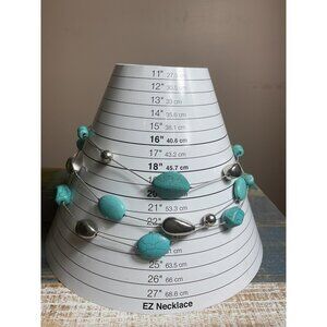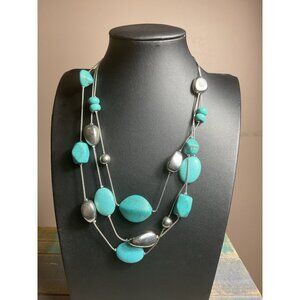 Turquoise & Silver Tone Multi-Strand Beaded Necklace Adjustable Length