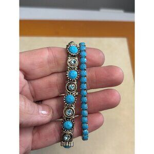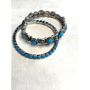This set of two turquoise and silver-tone stretch bracelets offers a stylish and versatile accessory option. Each bracelet features intricate detailing, combining vibrant turquoise stones with a durable stretch design for a comfortable fit.