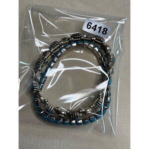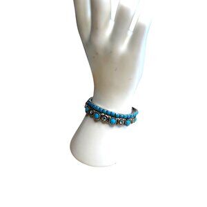 Turquoise & Silver-Tone Stretch Bracelets Set Of 2