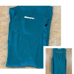 Turquoise Sleeveless V-Neckline Career Layering Top