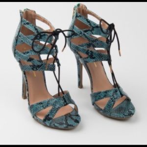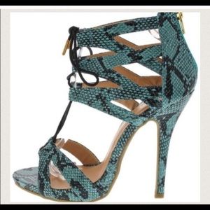 Turquoise Snake Print Heels