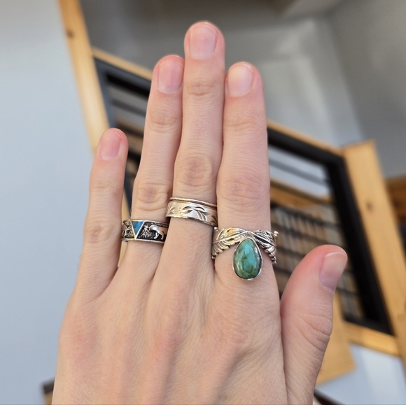 Handcrafted stamped 925 sterling silver. authentic turquoise gemstones. beautiful hand engraving on sides.