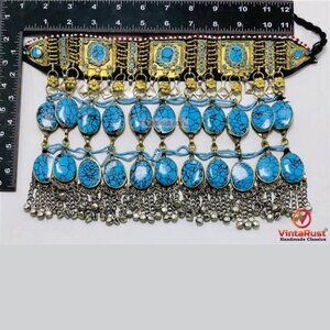 Turquoise Stone Afghan Choker: Tribal Kuchi Jewelry Statement Necklace