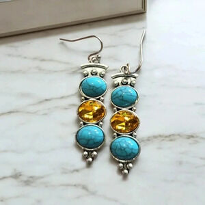 Turquoise Stone Bohemian Gemstone Dangle Earrings