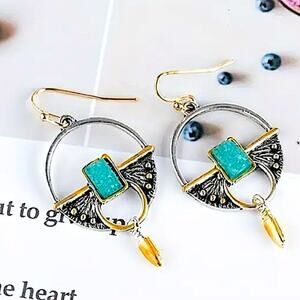 Turquoise Stone Boho Dangle Earrings