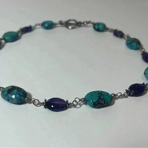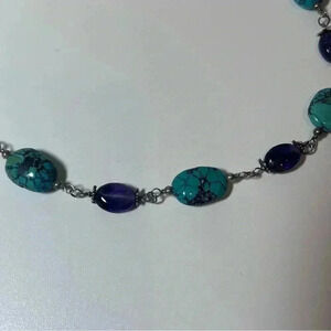 Turquoise Stone Sterling Silver Purple Amethyst Necklace Vintage Beautiful