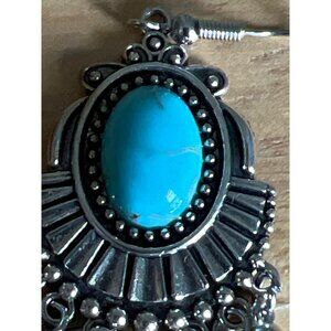 Turquoise Style Earrings Silver Tone costume Southwestern Cowgirl Rodeo Boho