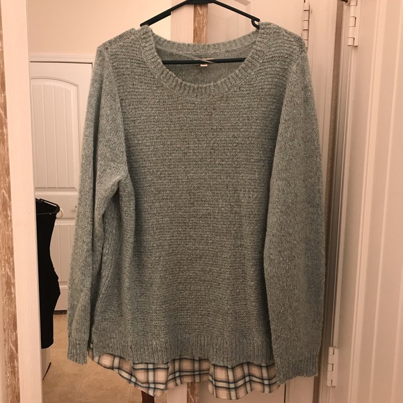 Cute sweater with faux plaid shirt trim. Only been worn once.