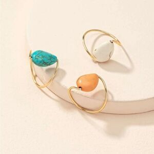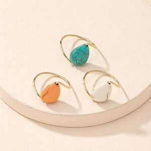 BRAND NEW turquoise TEXTURE WATER DROP STONE RINGS 3PC SET