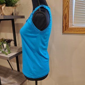 Laura Petites Turquoise Tank with ruffled detail at neck and arms