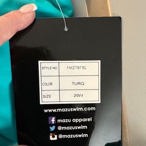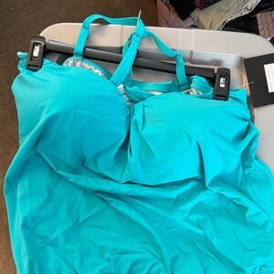 Vibrant turquoise blouson tankini top with adjustable or removable straps. Padded shelf bra and decorative whipstitch hem with cute side knot. New with tags. 20W. Make offer.