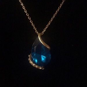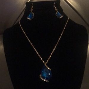Turquoise Teardrop and Rhinestone Necklace/Earring Set has gold tone chain necklace