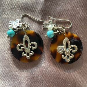 Turquoise & Tortoise Cross & Fleur-de-Lis Necklace Set Boho Designer Inspired