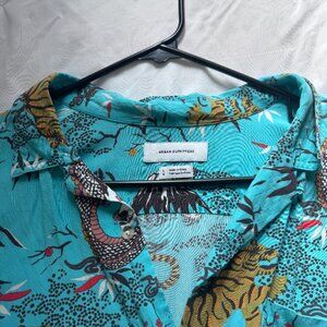 Urban Outfitters Turquoise Unisex Tiger and Dragon Printed Collared Button Down - Size Large