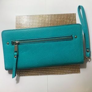 Holds 10 cards. Zipper pocket for coins inside. Zipper on the front of the wallet.