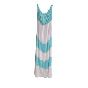 Turquoise & White Large Chevron Maxi Summer Dress Tween Teen