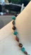 Elegant turquoise and brown beaded necklace with intricate red accents. Perfect for adding a pop of color to any outfit.